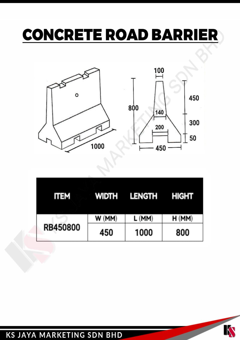 The Concrete Road Barrier is a durable and reliable solution designed to enhance safety on roads, highways, and construction sites. Engineered to withstand heavy impact and harsh weather conditions, it provides effective separation between lanes, protects pedestrians, and controls traffic flow.