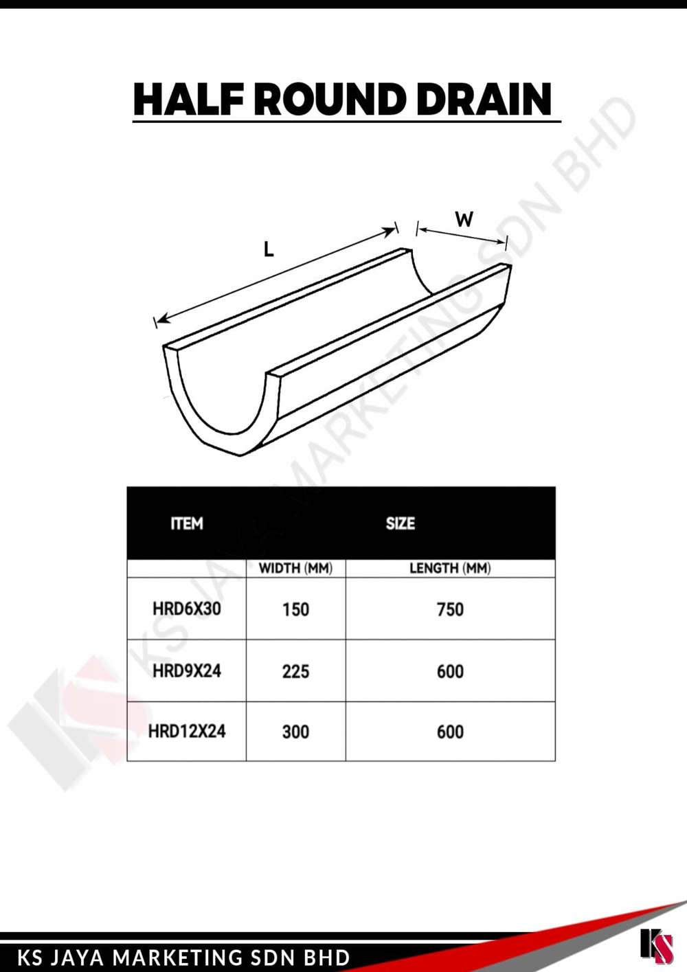 The Half Round Drain is a durable and efficient drainage solution designed to manage surface water in residential, commercial, and industrial projects. Its half-round profile allows smooth water flow, preventing water accumulation and reducing the risk of blockages.